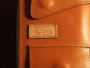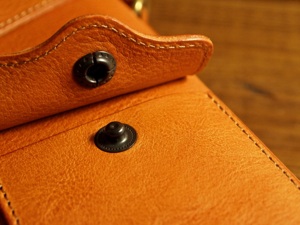 素材はイタリアConceria La Bretagna社のバケッタレザーのタンである。