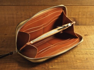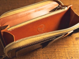 しかし常に手に触れるウォレットということを考え、今回は肌触り、アタリの出易さ等から、イタリアの植物タンニン100%のレザーを使用している。使い始めれば色味、艶等が劇的に変化していく。