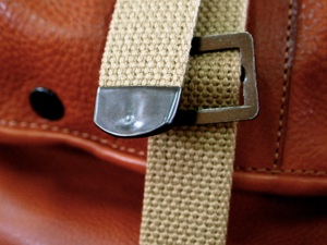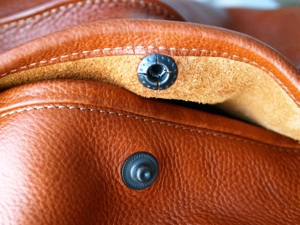 フタを開けるには2本のストラップを外しフロントの3つのスナップボタンを外さなければならず、少々手間がかかる。