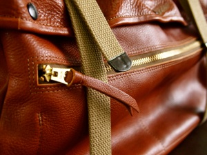 レザーの素材感とカラーによりミリタリー色は薄まっている。