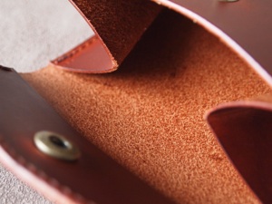 革の床面(裏面)は丁寧に磨きをかけ、毛羽立ちを押さえる処理を施している。