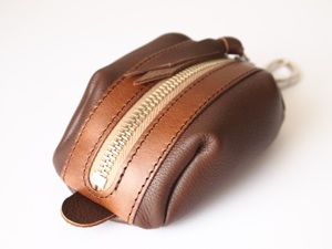 ころっとして愛嬌のあるデザインではあるが、レザーは非常に高級感のある素材を使用し、また落ち着いたカラーリングのため、オン、オフともに使う事が出来る。