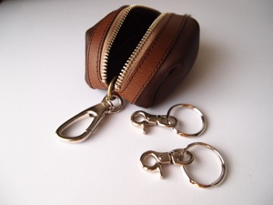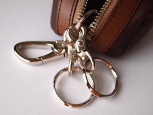 ファスナーを開けると中にレバー付きのキーリングが2つ収まっている。