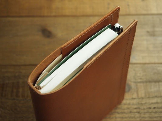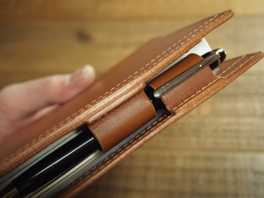 画像でおわかりのようにペンホルダーが内側にセットされており、カバーから飛び出さないようになっている。
