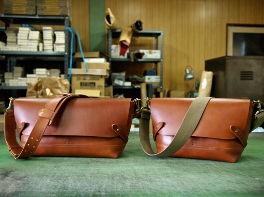 ツイルとレザーのコンビ。Lサイズは3つのポケット。