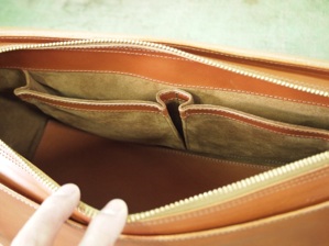 非常に贅沢な作りである。Lサイズはポケットが3つ。