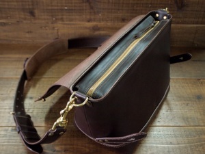 マチは広めにとり、財布、手帳、タブレット、スマホ、ハンカチ等…まだまだ収納可能。