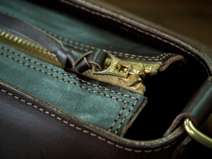 フラップを開けるとファスナーが装着されている。荷物を取り出すまでに「フラップを上げ、ファスナーを開く」という2ステップを踏まなければならない。