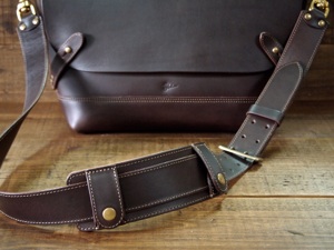 肩パッドが付属。真鍮無垢の高品質な金具を使用している。