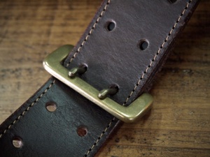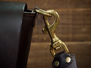 真鍮製のギボシは時が経つにつれレザーとともに経年変化する。