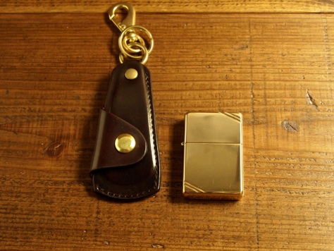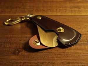 アメリカ/HORWEEN社のシェルコードバンのカバーが付いた真鍮製シューホーン(携帯用)。