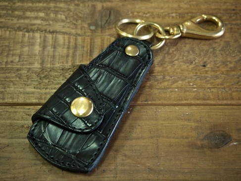 本物のクロコダイル製のカバーが付いた携帯靴べら。 型押しレザーではない「本物」の貫禄。