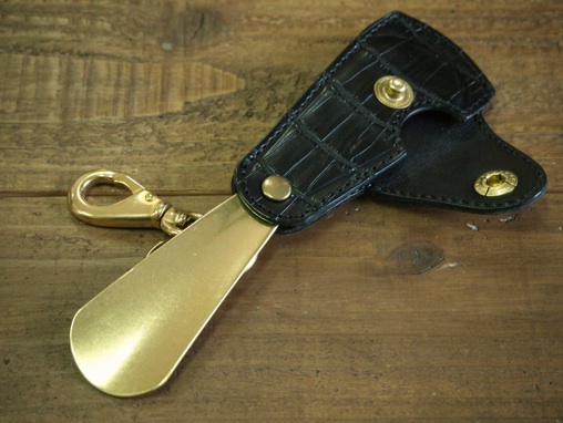 リアルクロコダイル製カバー付き真鍮靴べら