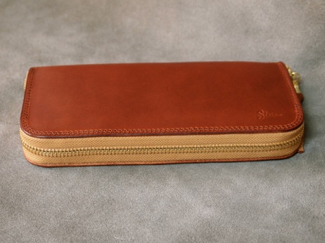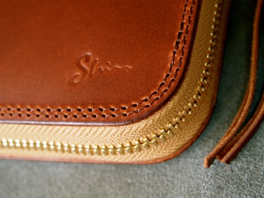 シンプルなデザインであるが、ダブルステッチと Shinの刻印がアクセントとなる。