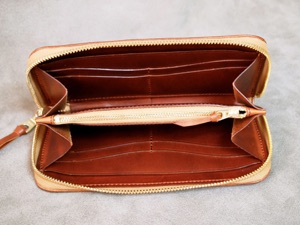 通常、財布という物は薄い革の裏に生地を貼り、その中に芯を入れて作っている。