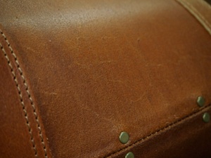 ザラついた質感が通常の革にはない「荒々しい」雰囲気を醸し出す。