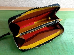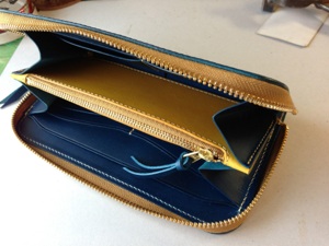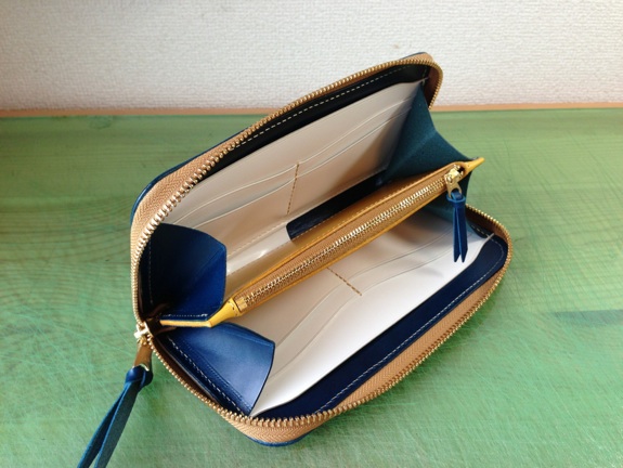 ラウンドファスナーウォレットのブルーの内装を白、青、黄色に変更。