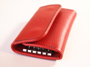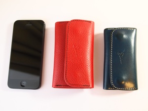 ※左からiPhone5、オーダーのキーケース、定番商品のキーケース。