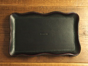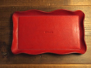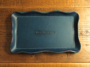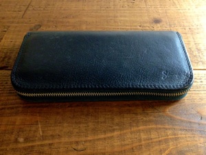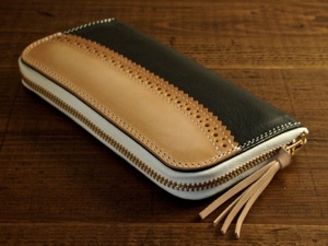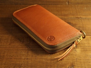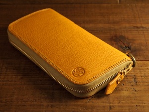 ラウンドファスナーウォレットに家紋の刻印を入れました。