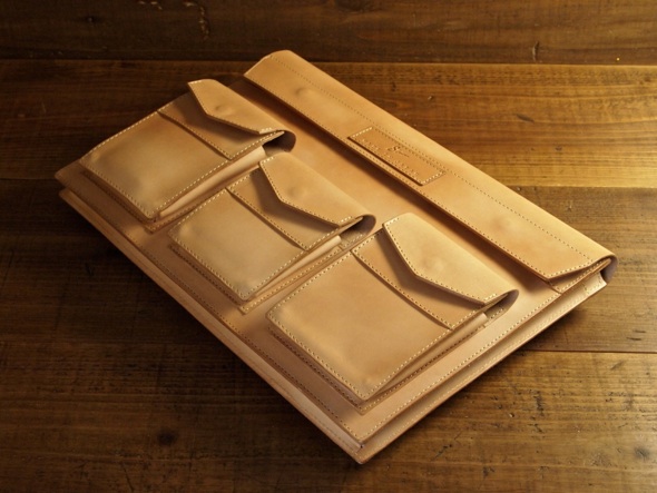 ヌメ革インナーバッグ。パソコン、wifi、バッテリー等が収納可能。