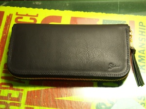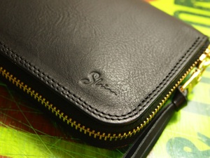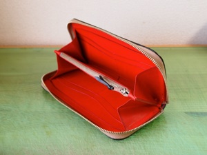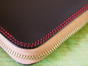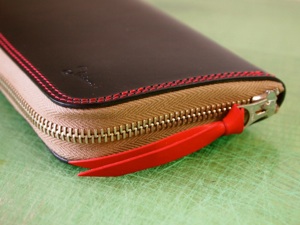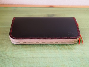ラウンドファスナーウォレットBLACK SP をベースに内装とステッチを赤に変更しました。