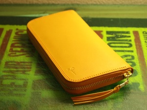 上はイエローのヌメ革、下はバケッタレザーのブラック。
