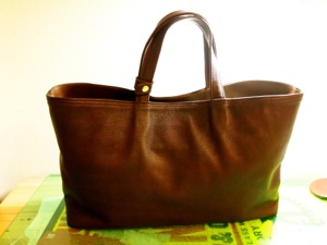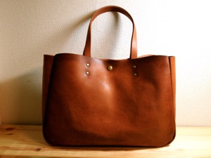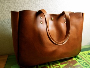 バックスキンをあえて使ったワイルドなトート。完成後、ニートフットオイルを塗る事によりアンティーク加工を施しました。またバックスキンを使用することによりお求めやすい価格となる予定です。(予価19000円)