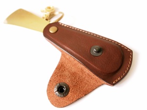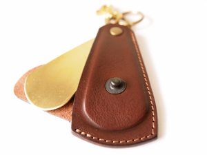 表のスナップボタンを開けると中には真鍮製の靴べらが入っています。