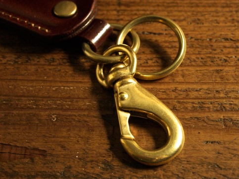 真鍮無垢の金具類。レザーとともに経年変化が楽しめる。