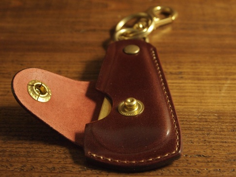 スライドさせて靴べらを使用。常に携帯してレザー、ブラスのエイジングを楽しんでいただきたい。